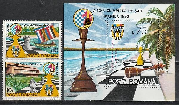 Румыния 1992, Шахматы, Олимпиада в Маниле, 2 марки + блок)