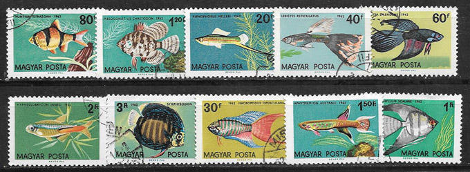 Рыбы. Венгрия 1962 год.10 гашеных марок.