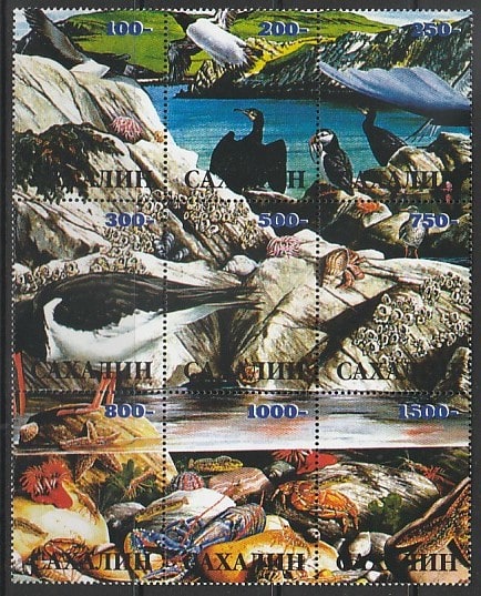 Сахалин. Морская фауна, 9 марок (н