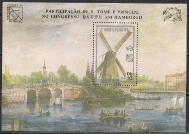 Сан-Томе и Принсипи 1983 год. Всемирный почтовый конгресс в Гамбурге. Ландшафты. Блок