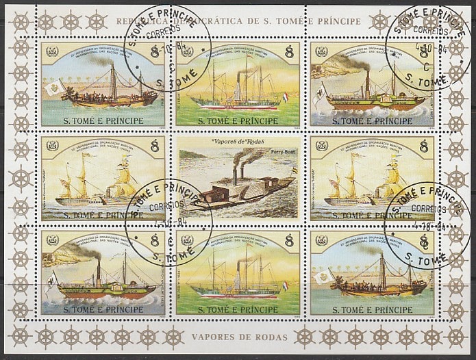 Сан-Томе и Принсипи 1984 год. 25 лет Международной Морской организации, ном. 8 Db, малый лист (гашёный)