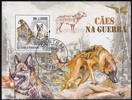 Сан-Томе и Принсипи 2009 год. Собаки на войне, блок (гашёный)
