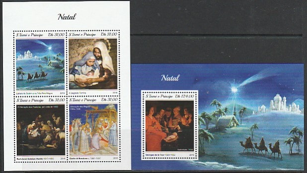 Сан-Томе и Принсипи 2018 год. Религиозная живопись. Рождество, малый лист + блок (большой формат)