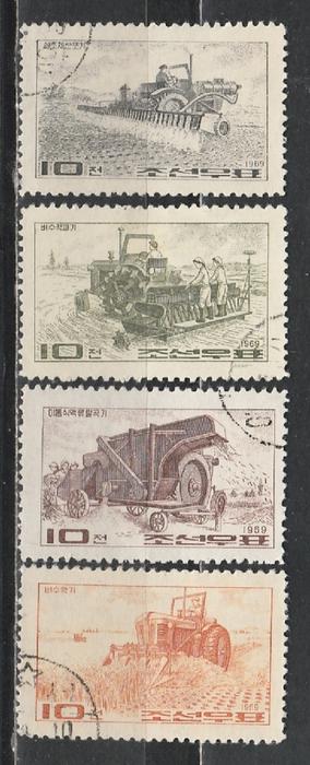 Сельскохозяйственная Техника, КНДР 1969 год, 4 гашёные марки