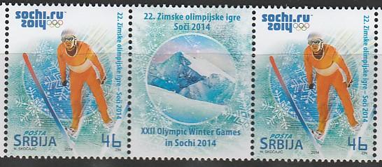Сербия 2014 год. Зимние Олимпийские игры в Сочи. Прыжки с трамплина, 2 марки с купоном в сцепке