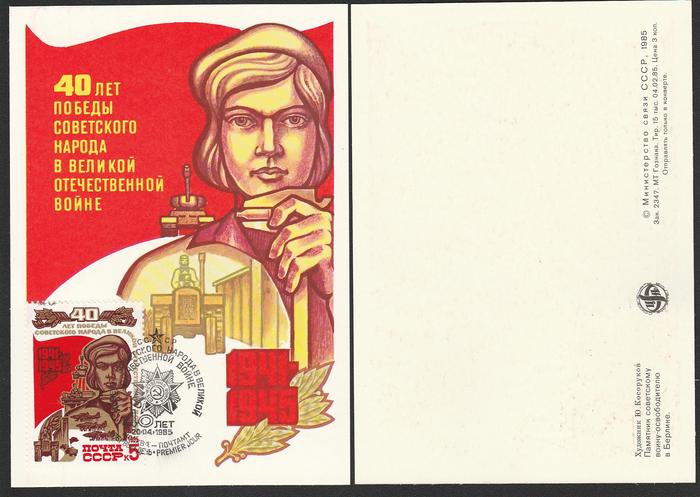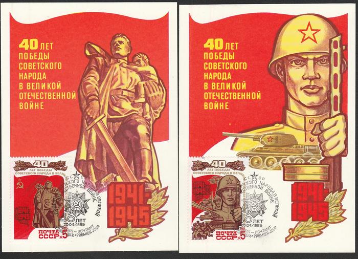 Серия из 5 картмаксимумов. 40 лет Победы. Спецгашение "ПД" 20.04.1985 год.