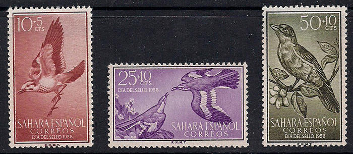 Серия марок Птицы. Испанская Сахара, 1958 г. (наклейка)