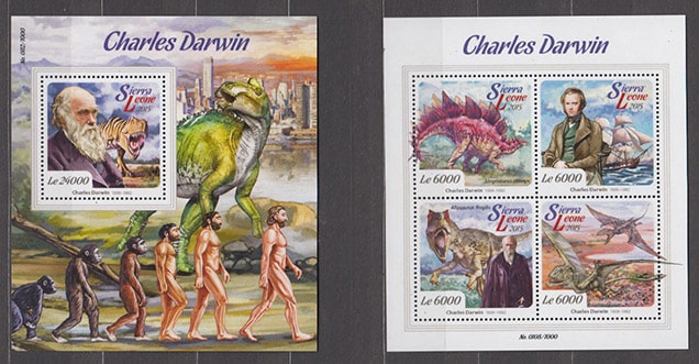 Сьерра Леоне 2015 год. Чарльз Дарвин. Динозавры. ЭЖволюция, блок и малый лист
