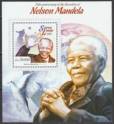 Сьерра-Леоне 2015 год. Политик. Нобелевский лауреат Нельсон Мандела, блок.