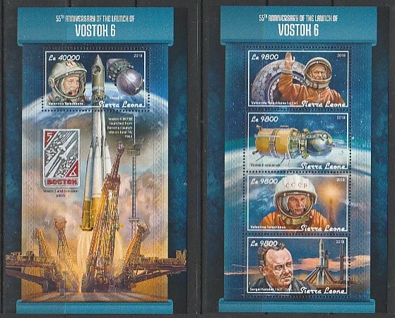 Сьерра-Леоне 2018 год. Космос. В. Терешкова и С. Королёв, малый лист + блок.