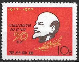 КНДР 1967 год. 50 лет Октябрьской революции, Ленин, 1 марка. ГАШЁНАЯ