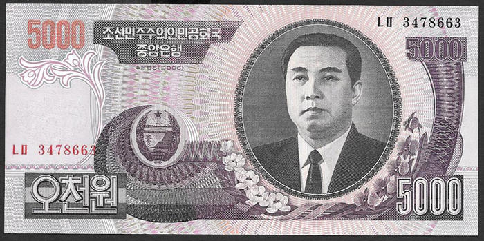 Северная Корея. 5000 вон 2002-2006 годы UNC