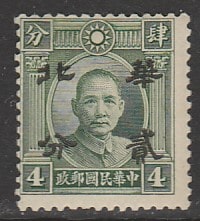 Северо-Восточный Китай (японская оккупация) 1942 год. Стандарт. Сунь Ятсен, ндп, ном. 2 С/4 С, 1 марка из серии (наклейка) (4/3)