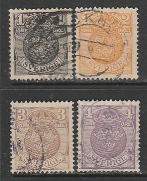 Швеция 1911 год. Стандарт. Три короны, 4 марки (гашёные)