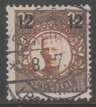 Швеция 1918 год. Стандарт. Король Густав V, надпечатка нового номинала, 12/25 эре, 1 марка из серии (гашёная)