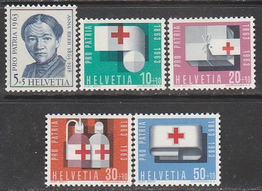 Швейцария 1963 год. 100 лет со дня рождения Анны Геер. Красный Крест, 5 марок.