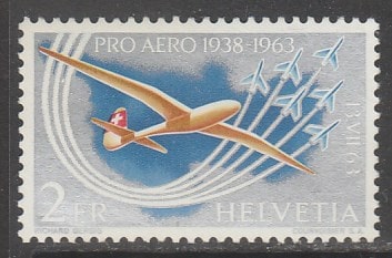 Швейцария 1963 год. Самолёты с инверсионными следами, 1 марка.
