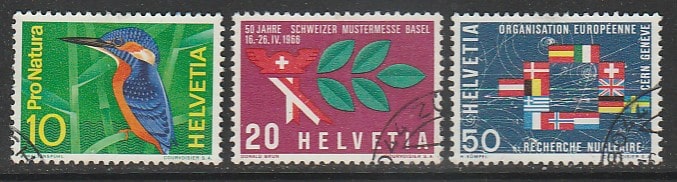 Швейцария 1966 год. Флаги государств организации по ядерным исследованиям. Зимородок, 3 марки (гашёные) (1,2/0,8)