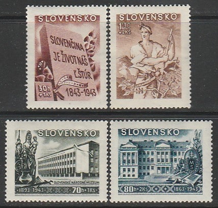 Словакия 1943 год. Культурный фонд, 4 марки (наклейка) (2,5/2)