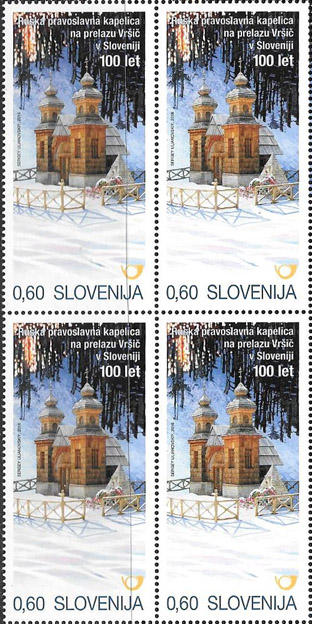 Словения 2016 год. Совместный выпуск Словения - Россия. Русская Православная часовня на перевале Вршич в Словении, квартблок