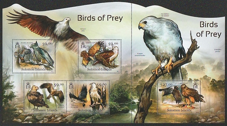 Соломоновы острова 2012 год. Хищные птицы, малый лист + блок (сцепка)