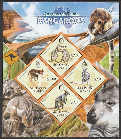 Соломоновы острова 2013 год. Австралийская фауна. Кенгуру, малый лист (I)
