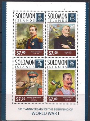 Соломоновы острова 2014 год. 100 лет с начала Первой мировой войны. Малый лист