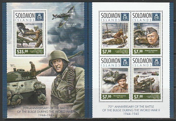 Соломоновы острова 2014 год. 70 лет битве в Арденах, малый лист + блок.