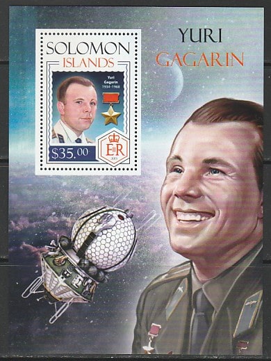Соломоновы острова 2014 год. Первый космонавт Ю.А. Гагарин, блок.
