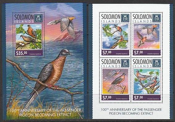 Соломоновы острова 2014 год. Вымерший вид голубей. Странствующий голубь, малый лист + блок.