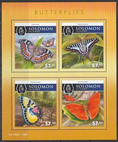 Соломоновы острова 2015 год. Бабочки, малый лист (II)