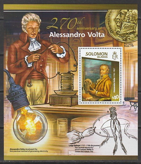Соломоновы острова 2015 год. Итальянский физик Алессандро Вольта, блок.