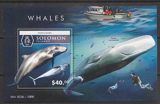 Соломоновы острова 2015 год. Киты, блок.