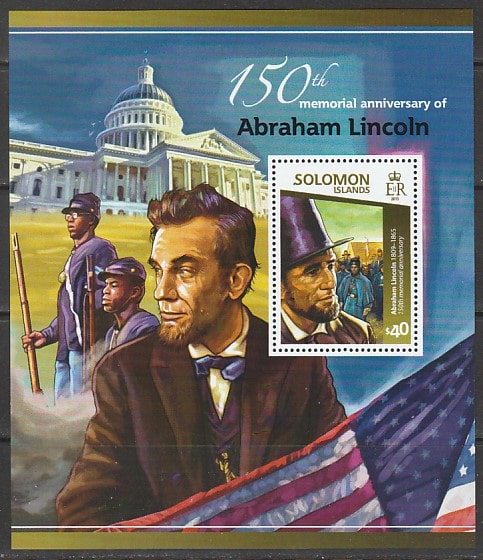 Соломоновы острова 2015 год. XVI Президент США Авраам Линкольн, блок.