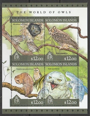 Соломоновы острова 2016 год. Совы, малый лист.