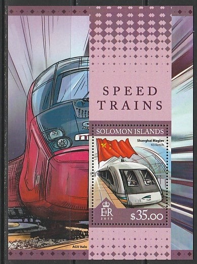 Соломоновы острова 2016 год. Высокоскоростные поезда, блок.
