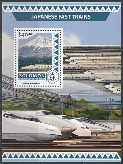 Соломоновы острова 2016 год. Японские высокоскоростные поезда, блок.