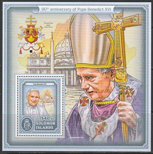 Соломоновы острова 2017 год. Папа Римский Бенедикт XVI, блок.