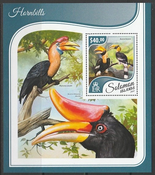 Соломоновы острова 2017 год. Птицы-носороги, блок.