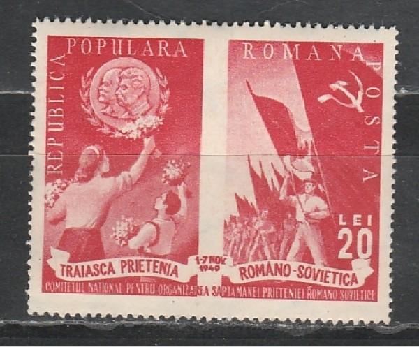 Советско - Румынская Дружба, Румыния 1949 г, 1 марка с Наклейкой. Сталин. Ленин. (тонкое место