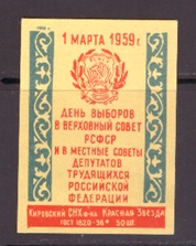 Спичечная этикетка. 1 марта 1959 год - День выборов, 1 штука
