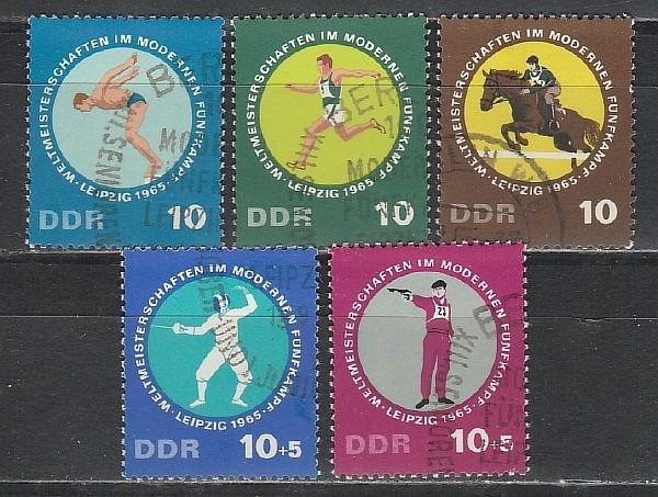 Спорт, ГДР 1965 год, 5 гашёных марок