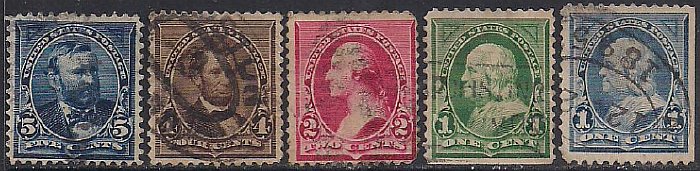 США 1894 год. Президенты. 5 гашеных марок из серии