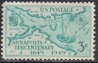 США 1949 год. 300 лет основанию Аннаполиса. 1 марка