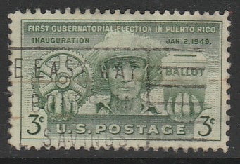 США 1949 год. Первые правительственные выборы в Пуэрто-Рико, 1 марка (гашёная)