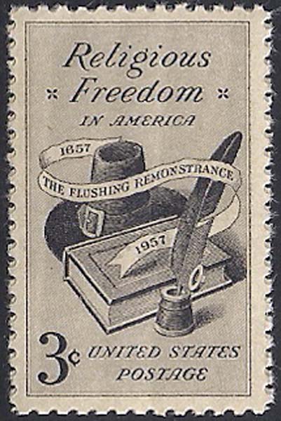 США 1957 год. 300 лет провозглашению свободы религии в США. 1 марка