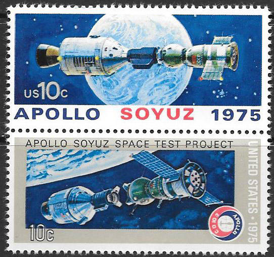 США 1975 год. Союз-Аполлон, совместный выпуск. на Нижней марке излом с обратной стороны