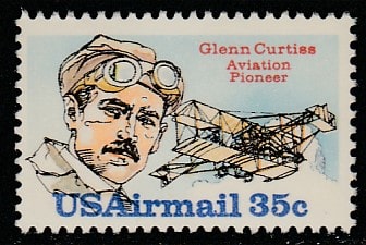 США 1980 год. Авиапочта. Пионеры авиации: Глен Хаммонд Кёртисс, 1 марка из двух.