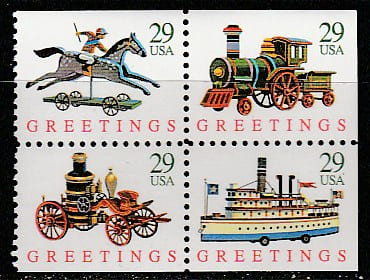 США 1992 год. Рождество. Детские игрушки, квартблок с частичной перфорацией. (4,8)