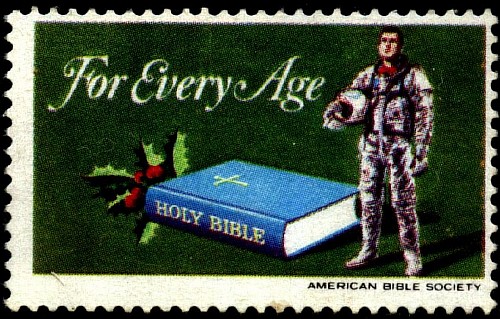 США. Непочтовая марка (зеленая). Мир на Земле. Читайте библию